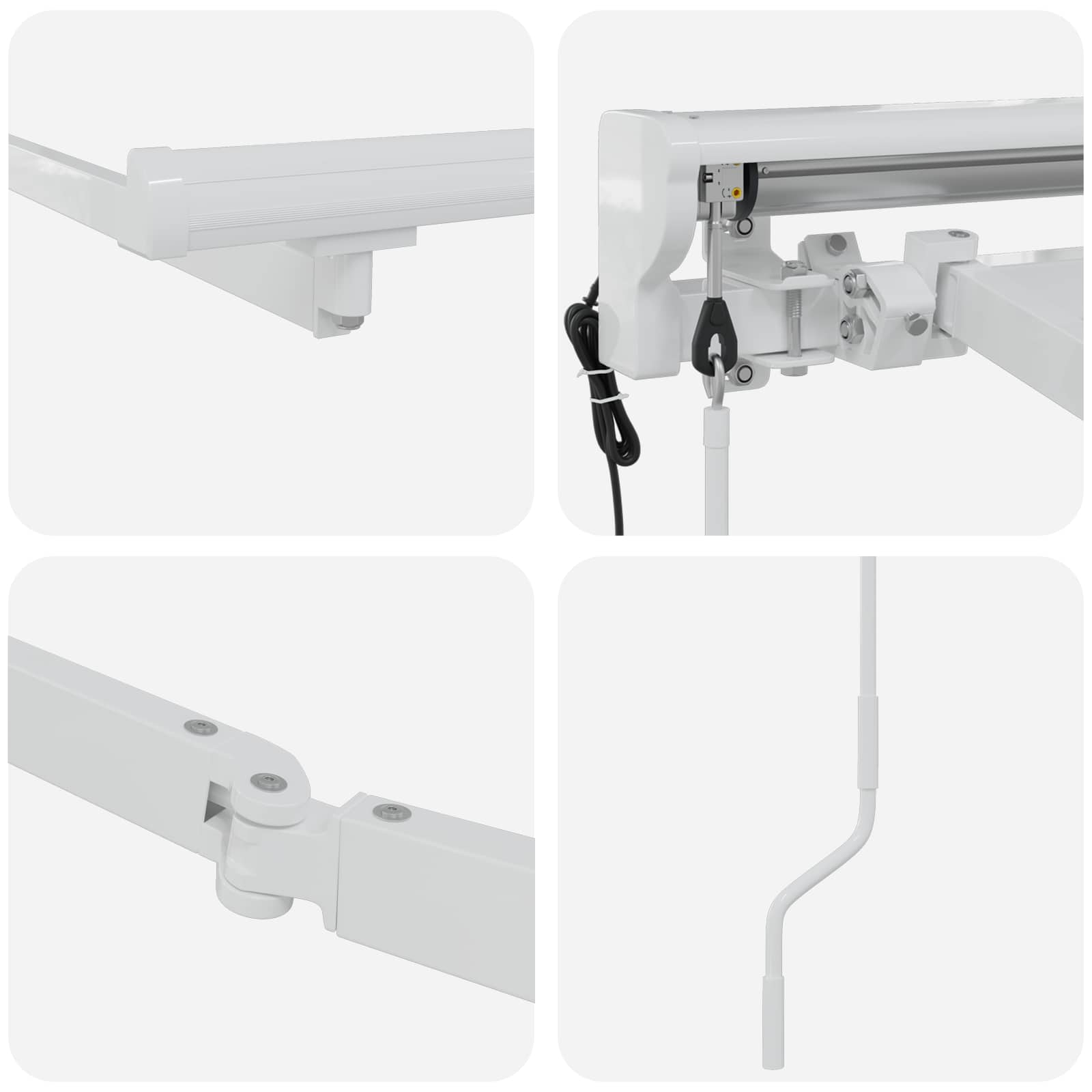 - Inclusief Componenten: Het frame heeft uitschuifbare armen die zorgen voor een soepele en efficiënte werking. De handmatige crank biedt makkelijke controle over het uitbreiden en intrekken van de luifel. Montagematerialen zijn ook inbegrepen voor een veilige wandmontage, zodat het frame extra stabiel en goed presterend is.