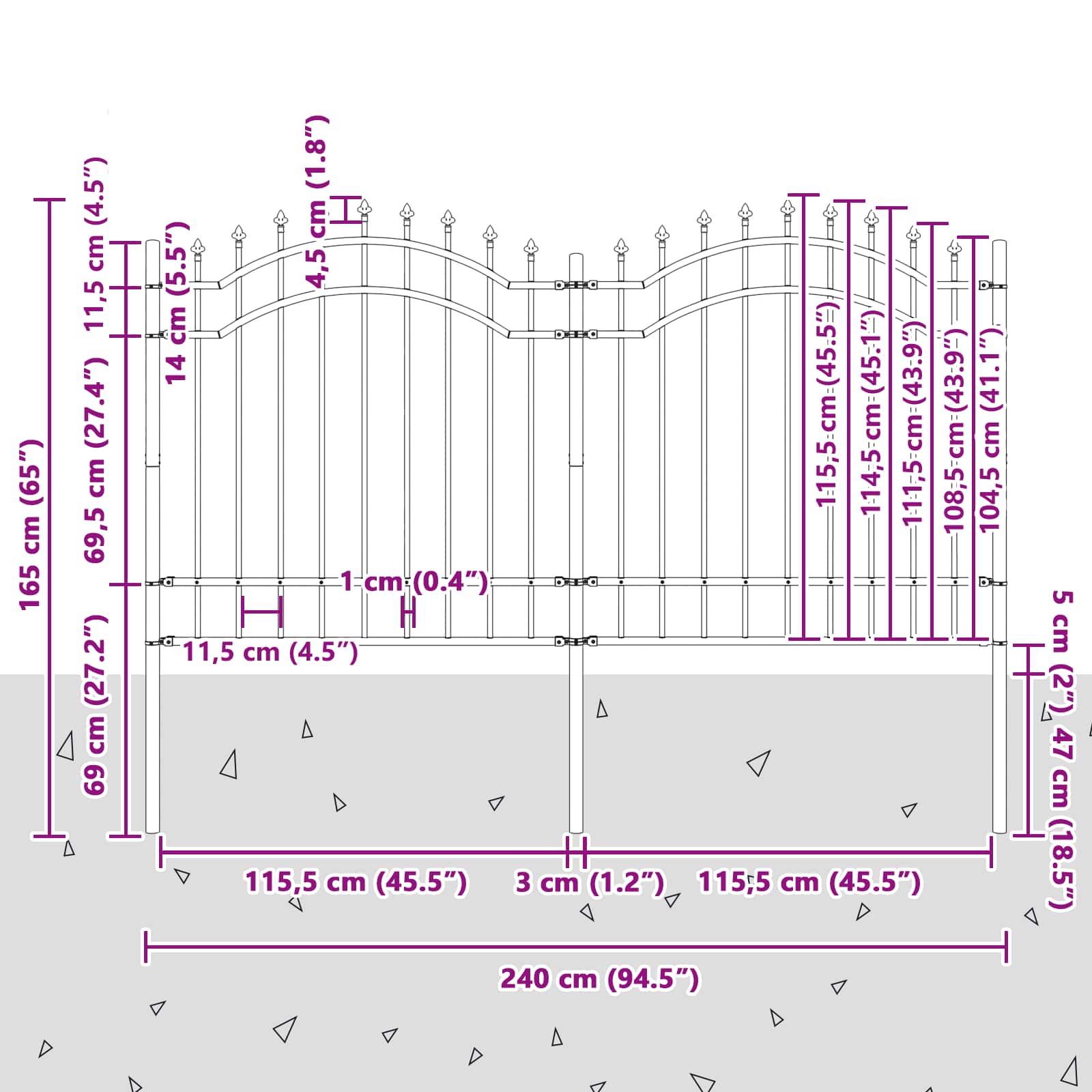 - Materialen: Gemaakt van sterk gepoedercoat staal, waardoor dit tuinhekje roest- en corrosiebestendig is. Het is perfect voor buitengebruik en gaat lang mee, zonder dat het zijn structuur of uiterlijk verliest, ongeacht het weer.